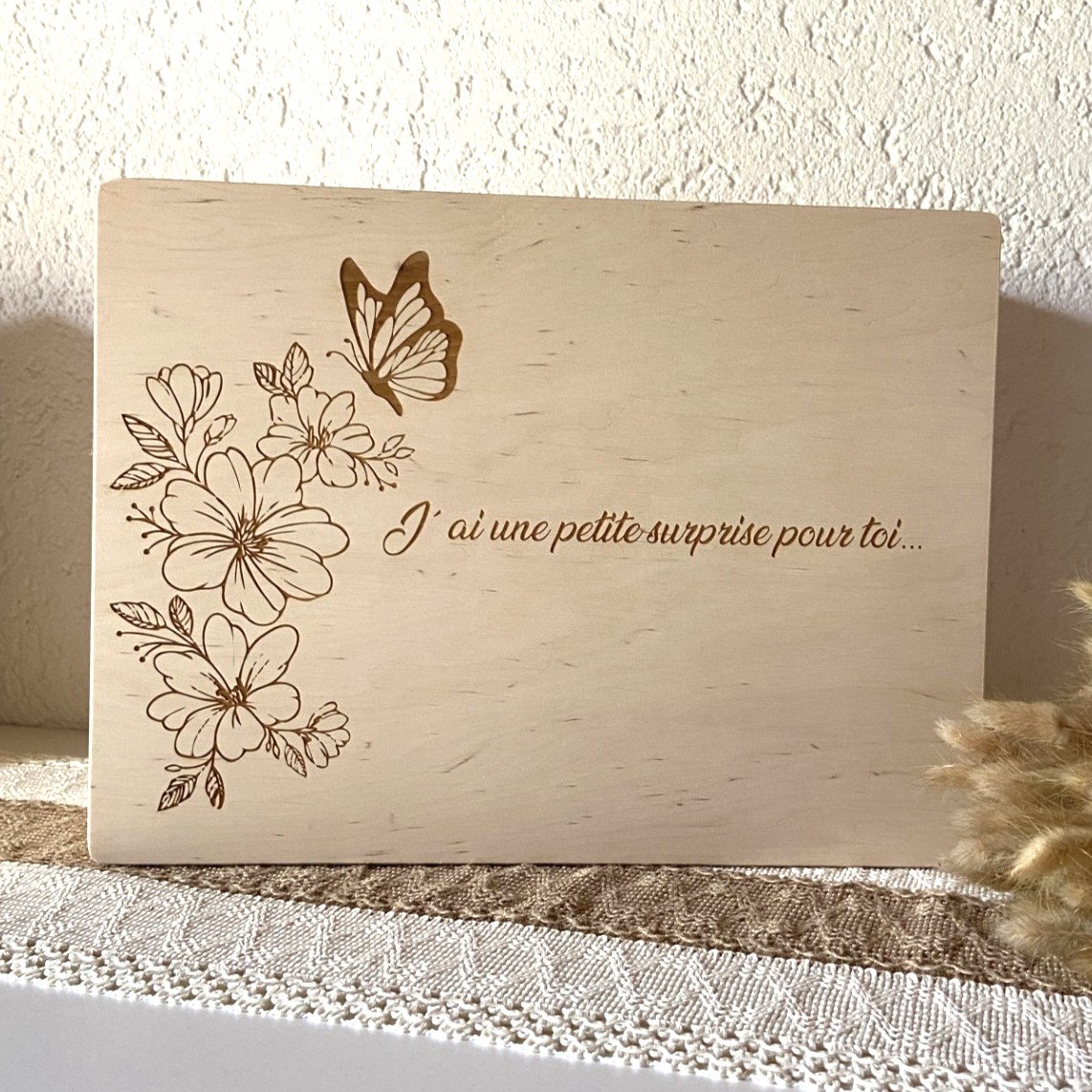 Cette jolie grande boîte en bois finement gravée est un cadeau unique et plein de charme. Elle est idéale pour conserver des souvenirs précieux : photos, divers objets, affaires de naissances bijoux ou autres trésors du quotidien.